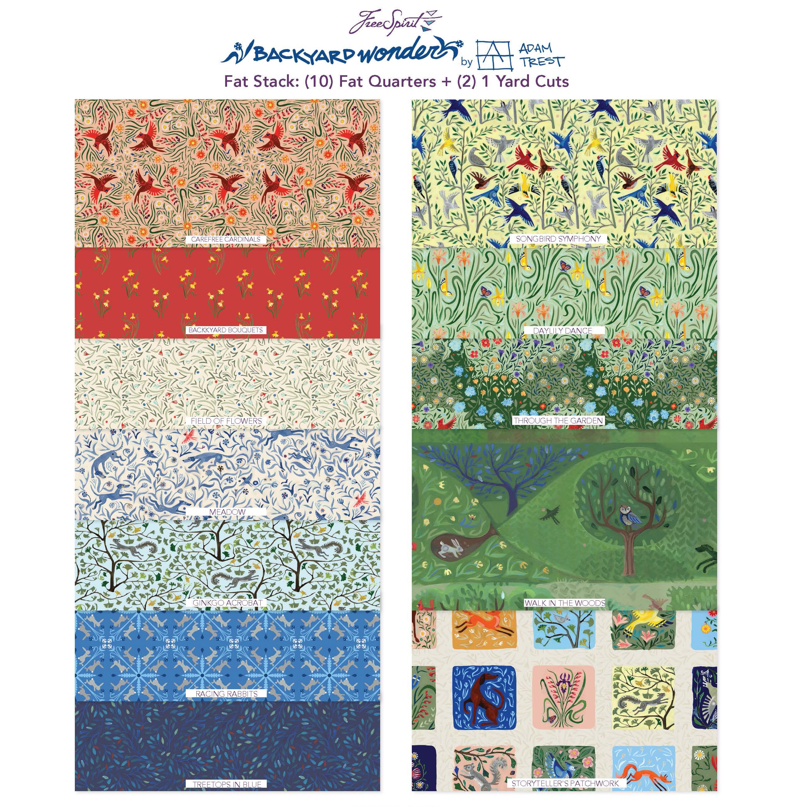 The Backyard Wonder Fat Stack includes all 12 patterns from the Backyard Wonder collection.